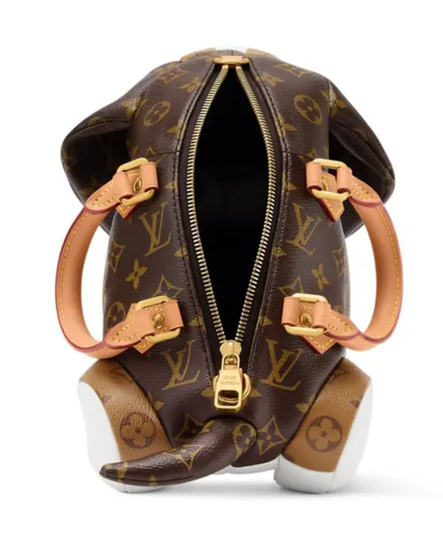 Zelf noemt Louis Vuitton de tas, net als de echte hond, ‘een trouwe metgezel’. Het is ook meteen te zien dat de hond een Beagle voor moet stellen, want de tas heeft alle herkenbare kenmerken van dit hondenras, inclusief de bekende gezichtsuitdrukking. De tas is verder vervaardigd uit een combinatie van iconisch gecoat Monogram canvas in twee tinten en zacht kalfsleder. Het witte gedeelte van het hondenlichaam is volledig van kalfsleder gemaakt. Daardoor krijg je een mix van texturen en kleuren. Pure